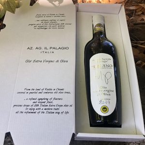 L’Olio Extra Vergine di Oliva Il Palagio è un olio extravergine di oliva biologico certificato IGP prodotto nelle colline che circondano Radda in Chianti. Tutto lo spirito di Maurizio e la passione che traspare dalla prosa di Dario scorre in ogni goccia di questo olio unico.